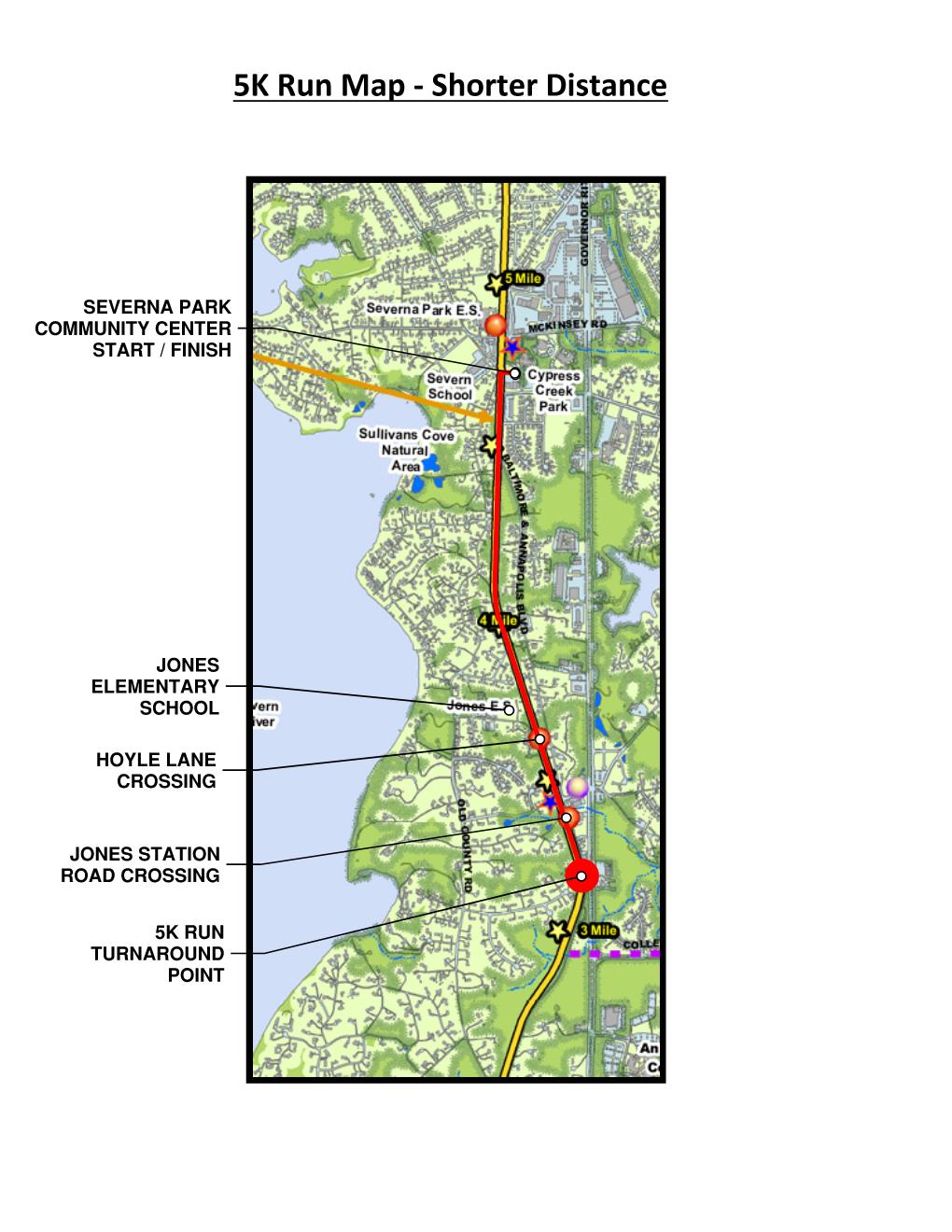 The 5K starts and ends at the Severna Park Community Center. Runners cross Baltimore Annapolis Blvd to the B&A Trail, follow it to the turnaround point, then return to finish at the Community Center—where the post-race celebration begins! Strollers and pets welcome..